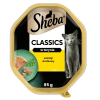 SHEBA Classics tray 85 g – complete wet food for adult cats, poultry cocktail, in jelly