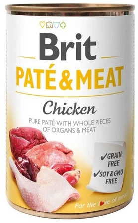 Brit Pate & Meat is a complete wet food for adult dogs of all breeds, rich in juicy chicken and all the necessary vitamins and nutrients. The food is easily digestible and well absorbed.