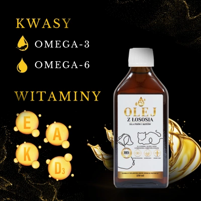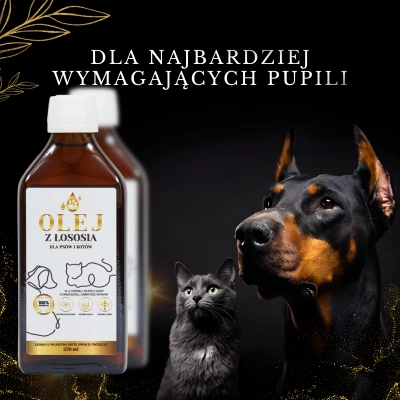 Atlantic salmon oil supplementation is beneficial at any age – the acids it contains support the mental development of puppies and kittens and cognitive processes in older pets. Furthermore, they lower cholesterol levels, increase collagen production, help the body fight heart and kidney disease, and protect against joint failure and cancer. As you can see, salmon oil is a versatile dietary supplement that, in addition to its valuable health-promoting properties, boasts a flavor and aroma that dogs love. It is ideal for: