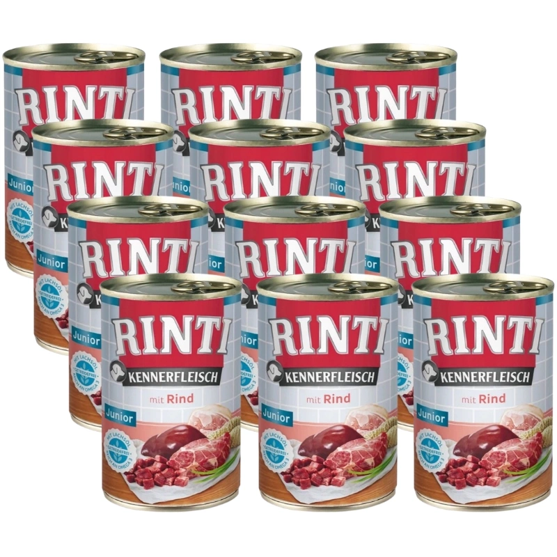 - Rinti Kennerfleisch wet canned dog food with juicy meat, enriched with linseed oil, in a variety of flavours.