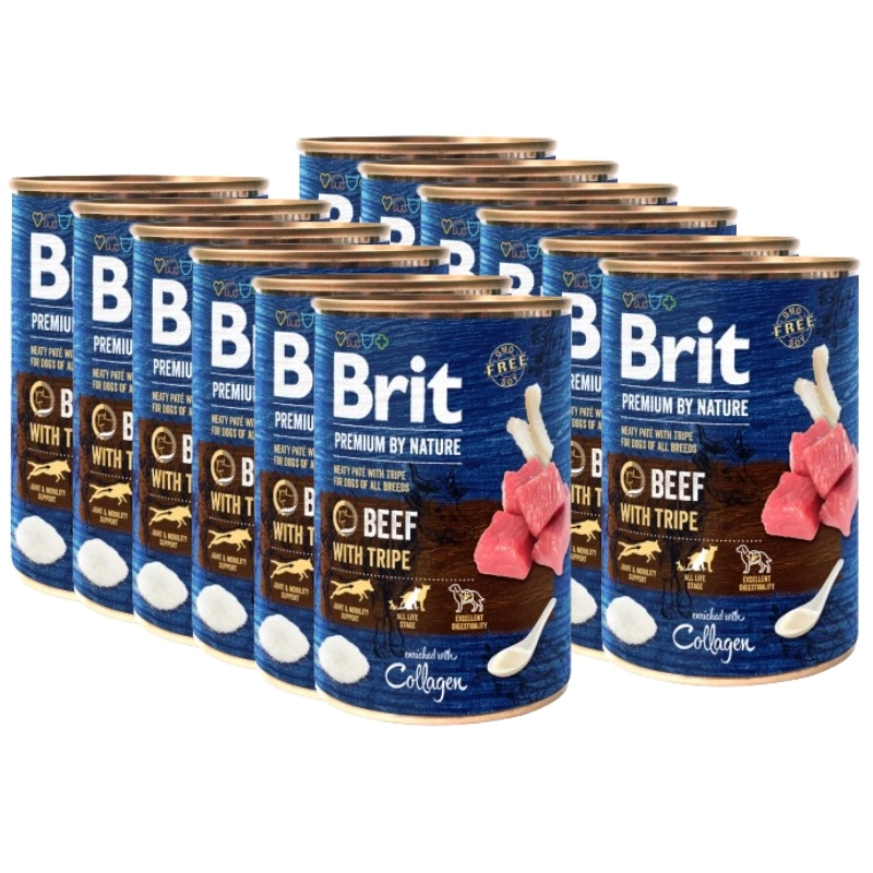Brit Premium Beef with tripe is a delicious wet food in the form of a meat pate with offal.