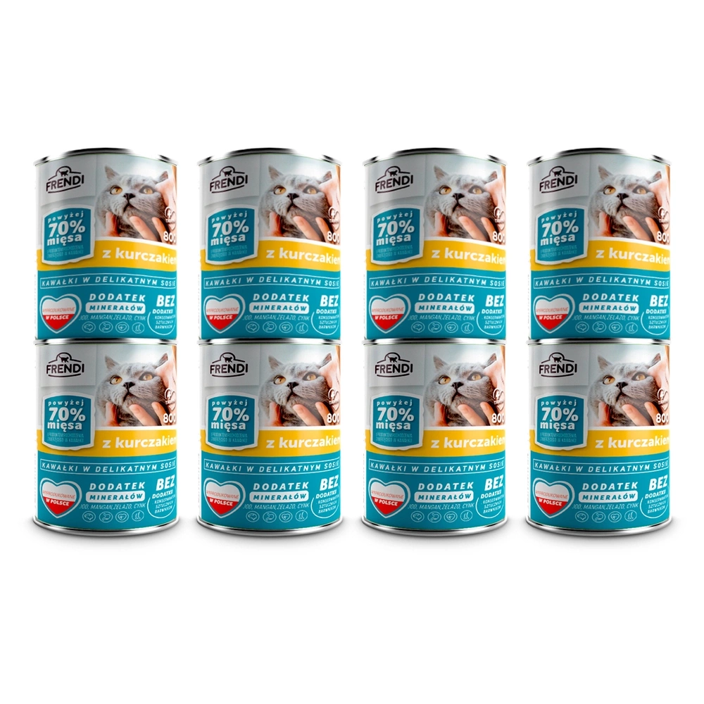 - Wet food for adult cats, with chicken flavour in a delicate sauce. 800g pack.