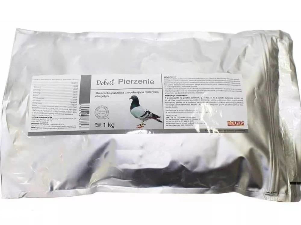 Dolvit Pierzenie is a supplementary feed mix for pigeons during the moulting period. It is a dietary supplement for specialized use, which is administered together with standard feed. Regular administration as an additive to basic feed helps to shorten the moulting period and promotes the growth of healthy, strong feathers. For best results, you can administer the mixture in advance. The feed contains carefully selected vitamins, minerals, and trace elements that pigeons particularly need during the molting period.