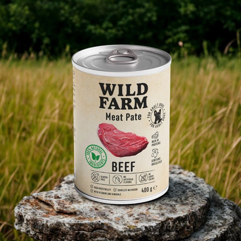 If your dog needs intense flavor and full nutritional value, choose Wild Farm Pate with Beef.