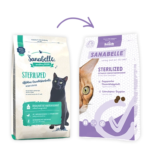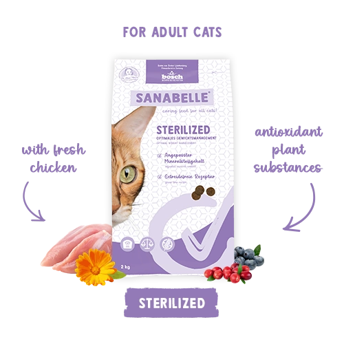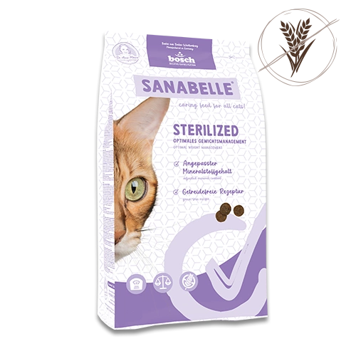 - Sanabelle Sterilised is a complete dry food with poultry and designed for adult cats after sterilisation.