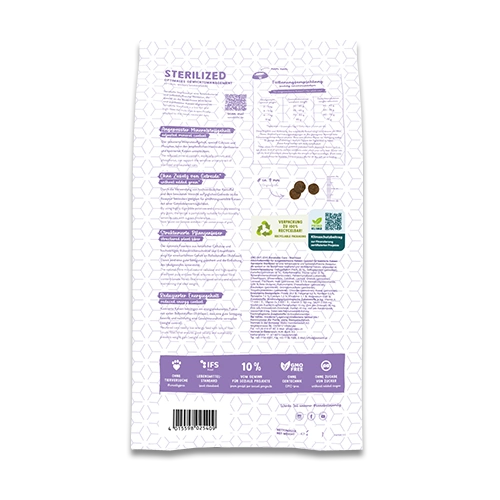Dry food for spayed and neutered cats at risk of post-operative weight gain. The food's primary goal is to provide low-calorie meals that satisfy hunger. Thanks to its high fiber content, convalescent cats feel full faster, automatically reducing the risk of overweight and obesity. The poultry and liver in BOSCH Sanabelle Sterilized provide sufficient protein, flaxseed promotes a healthy and shiny coat, and marigold flower produces lutein, which protects cells, aids digestion, and lowers blood sugar levels.