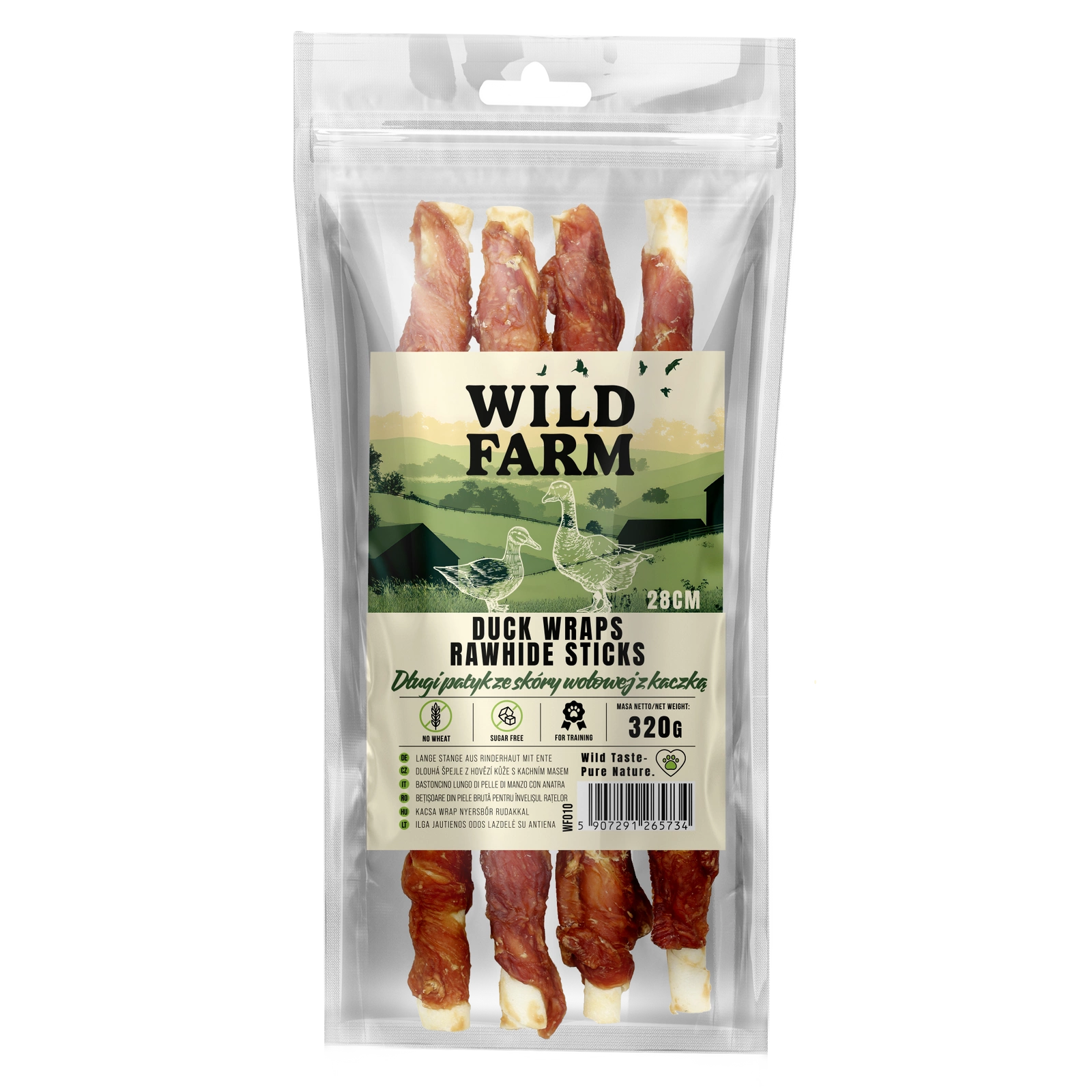 WILD FARM – Long Beef Hide with Duck Stick 28cm 320g