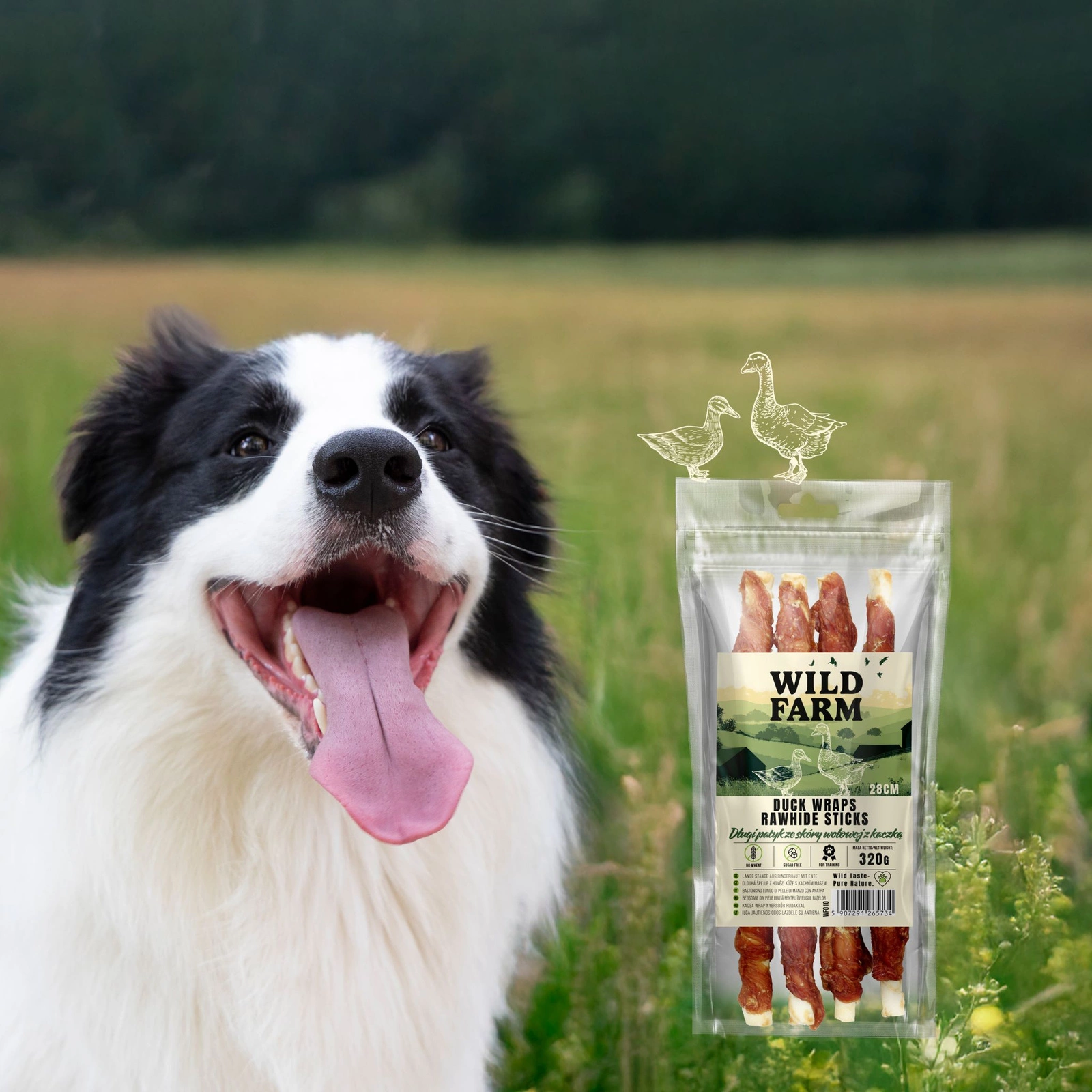 WILD FARM's long duck and beef hide stick is more than just a snack – it's a natural form of play, relaxation, and hygiene for your dog. Support their instincts and health every day.