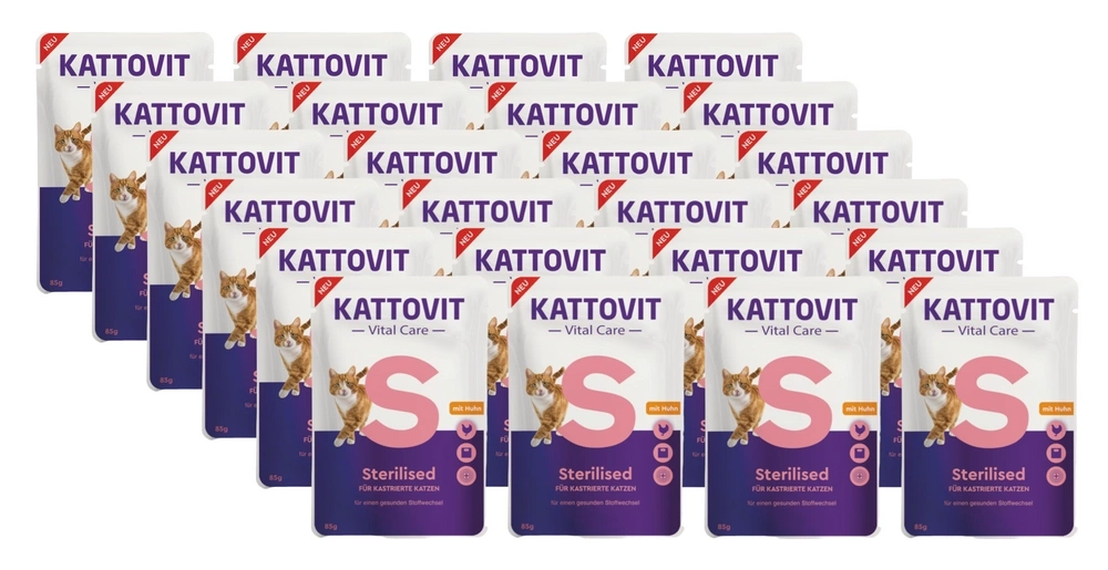 Kattovit Vital Care Sterilised can help neutered cats maintain a healthy urinary tract thanks to the added acidifier (DL-methionine). It can also support a healthy metabolism. KATTOVIT Vital Care was developed in collaboration with nutritionists and combines functional nutrition with excellent taste. This balanced, complete food can help your cat lead a more vital life. Protect complex - by enriching it with taurine and vitamin A, which must be actively supplied to your cat, this special formula of active ingredients can strengthen the immune system.