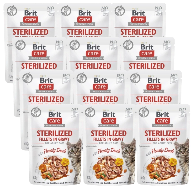 BRIT CARE Cat Sterilized Fillets in Gravy with Hearty Duck Enriched with Sea Buckthorn and Nasturtium 12x85g