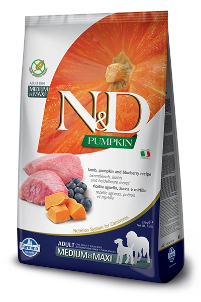Farmina N&D Pumpkin Grain Free canine LAMB & BLUEBERRY ADULT MEDIUM & MAXI 12kg