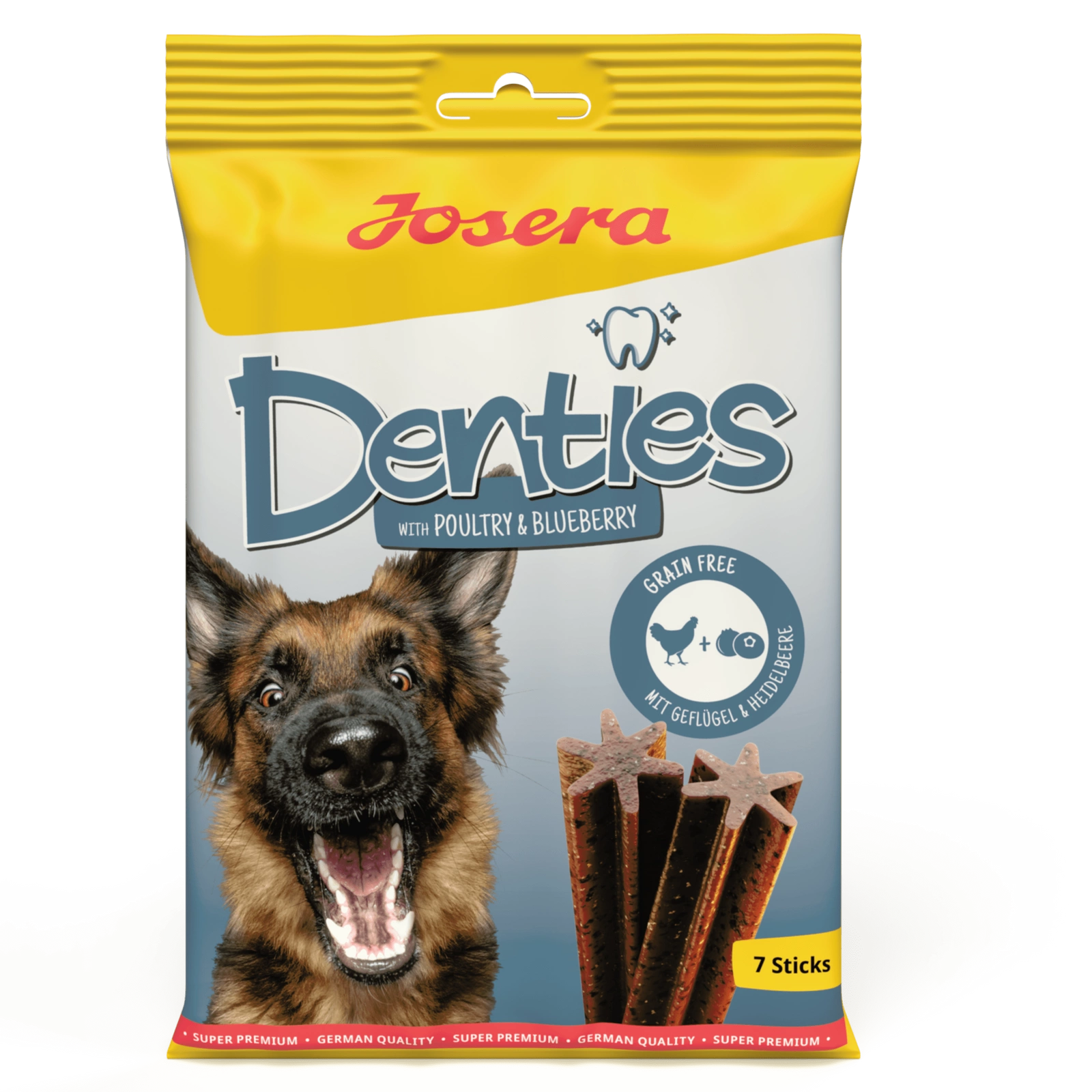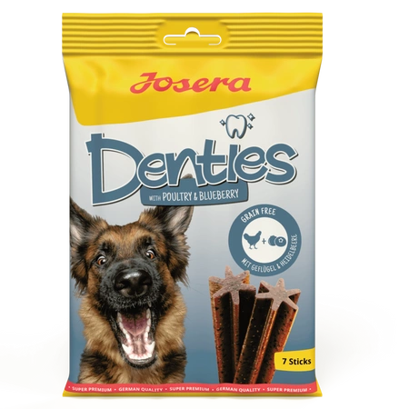 Josera Denties with Poultry & Berries are the perfect blend of oral care, great taste, and natural ingredients. These delicious, star-shaped dental chews gently clean your dog's teeth, promote gum health, and help reduce plaque and tartar — all while being a grain-free, low-fat, and highly enjoyable snack.