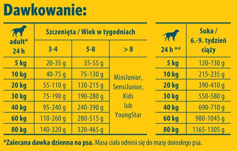 Recommended daily amounts are based on the adult dog’s weight.