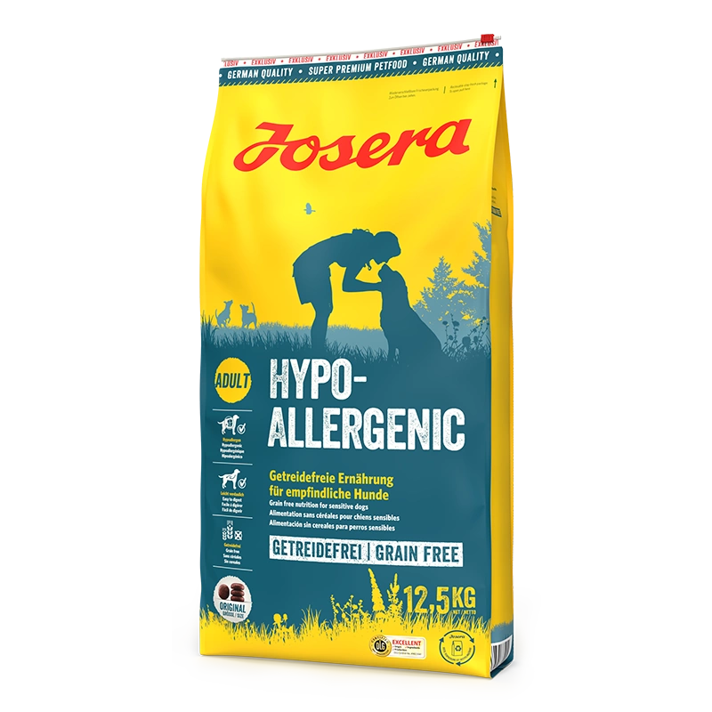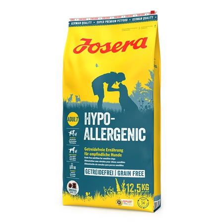 Josera Hypoallergenic is a grain-free, easily digestible Super Premium dog food designed for adult dogs with food intolerances or sensitivities. This carefully formulated recipe features a limited number of ingredients and uses insects (10%) as the exclusive source of animal protein, making it ideal for dogs with known or suspected food allergies or protein intolerances.