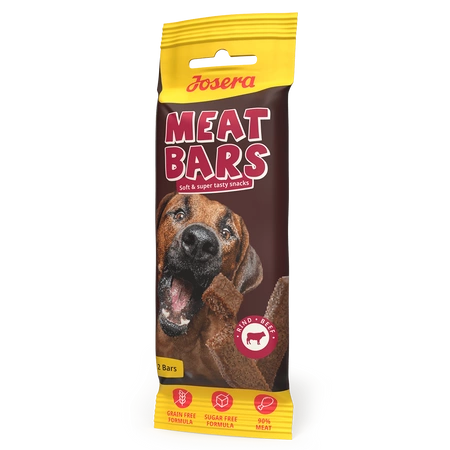 Discover a unique treat that every dog ​​will love! Josera Meat Bars with Beef are 90% meat, packed into a delicately dried bar. They're the perfect choice to reward your pet with a healthy, tasty snack that provides energy every day.