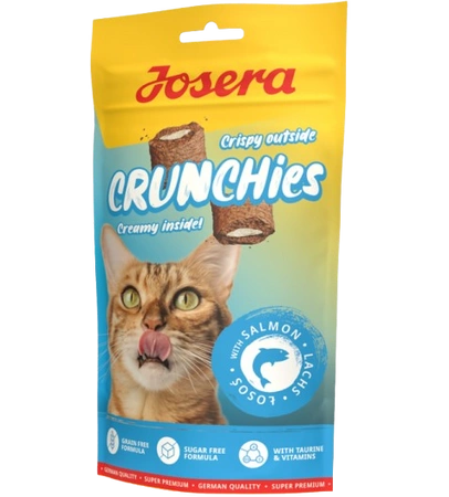 Of course our cats love fish! And Josera Crunchies with Salmon are packed with delicious salmon. What cat could possibly resist? When the crunchy shell gives way, the creamy filling inside is a true treat for the senses. These grain-free, low-calorie bites are the perfect daily snack – and more.