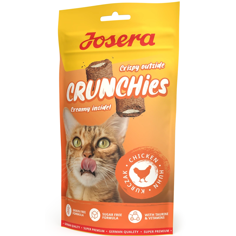 Wow, so crunchy! Josera Crunchies Chicken snacks offer so much more—filled with a creamy filling of delicious chicken for hungry kitties! These grain-free and low-calorie treats are the perfect everyday snack.