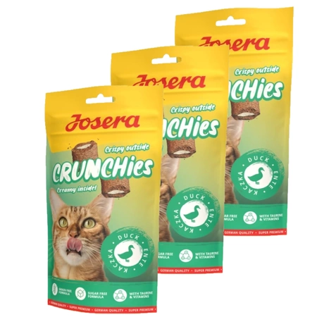 Don't worry, that sound is just Josera Crunchies Duck, being munched with delight by your cat! These crunchy treats have a creamy filling with delicious duck that's irresistible!