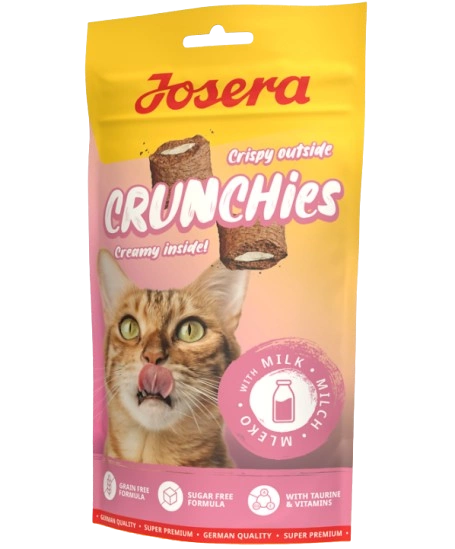 Some things never change – our little tigers have loved milk since they were kittens. Now they can enjoy it in a new, delicious way with Josera Crunchies with Milk! This grain-free, low-calorie snack has been refined to perfection: a crunchy outer shell with a creamy filling your cat will adore.