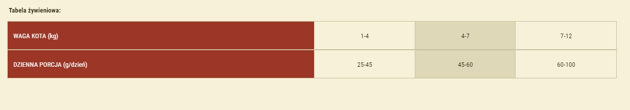 NUTRITIONAL ADDITIVES PER 1 KG: Vitamin A (E672) 25,000 IU, vitamin D3 (E671) 1,000 IU, vitamin E (α-tocopherol) (3a700) 750 IU, vitamin C (E300) 350mg, taurine 2,500mg, choline chloride 2,300mg, L-carnitine 70mg Niacin 50mg, Biotin 2.0mg, Zinc (E6) 160mg, Manganese (E5) 60mg, Iron (E1) 50mg, Copper (E4) 12mg, Iodine (E2) 4.0mg, Selenium (E8) 0.25mg, DL-methionine (3.1.1.) 15mg, Arginine (3c3.6.1) 13mg, L-lysine (3.2.3.) 11mg