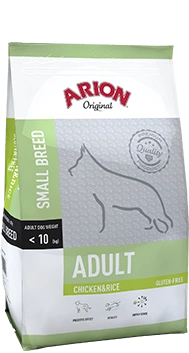 - ARION Original is a gluten-free food and does not contain any corn or other grain products for adult dogs of small breeds.