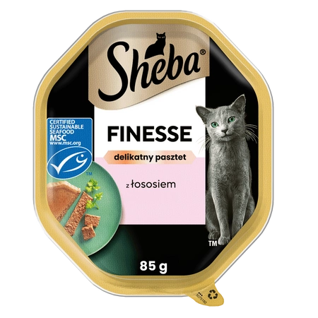 Sheba® Finesse complete food is a true delight in the form of a delicate pate for your feline friend. This salmon meal will delight the palates of even the most discerning cats. The secret to Sheba® Finesse's masterful recipe lies in its refined ingredients, vitamins, and minerals. Each tray contains nutrients that support your cat's proper functioning. Indulge your cat in a culinary delight, savoring delicious Sheba® Finesse food that will satisfy even the pickiest appetite.
