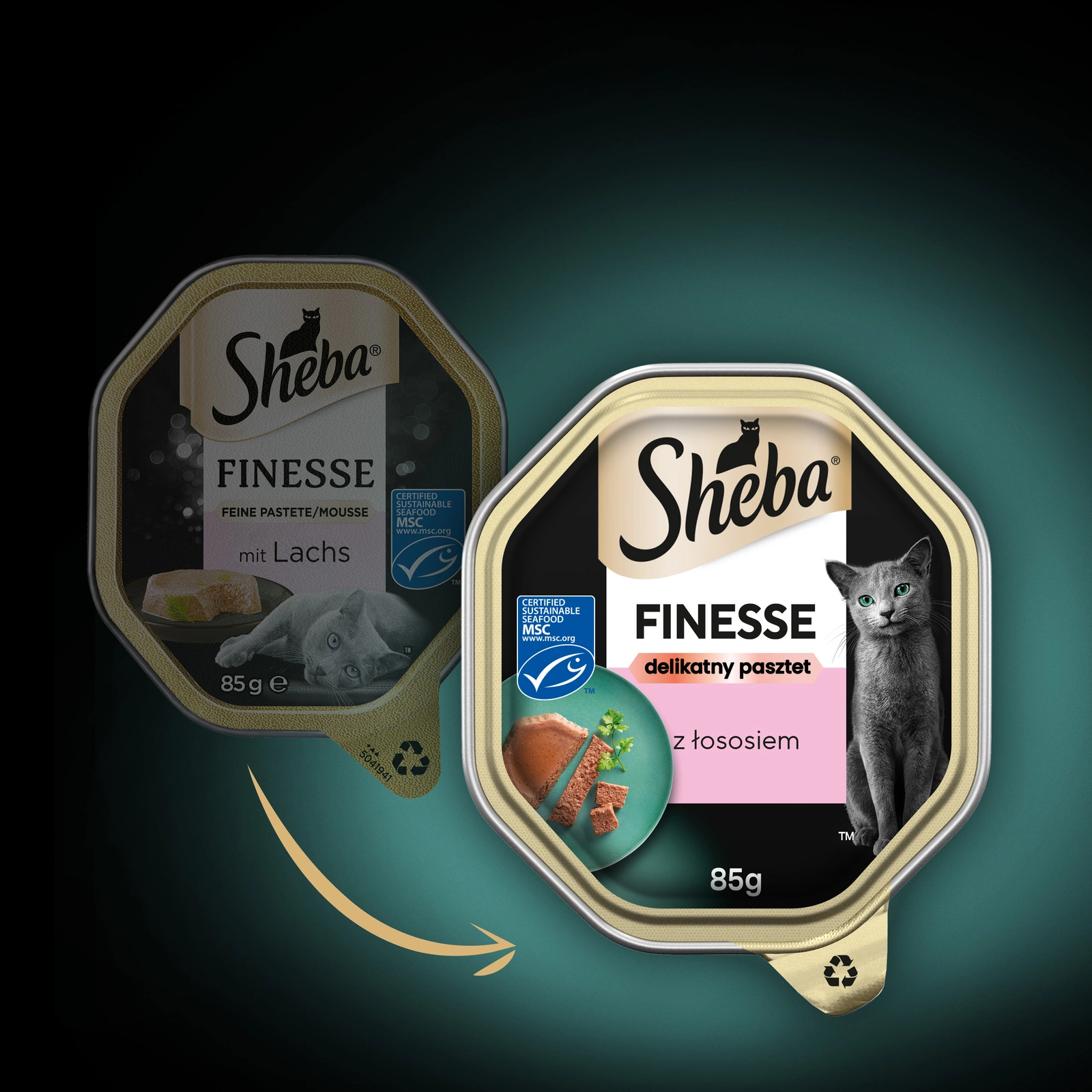 • Sheba® Finesse complete food is a real treat for your feline friend in the form of a delicate pâté.