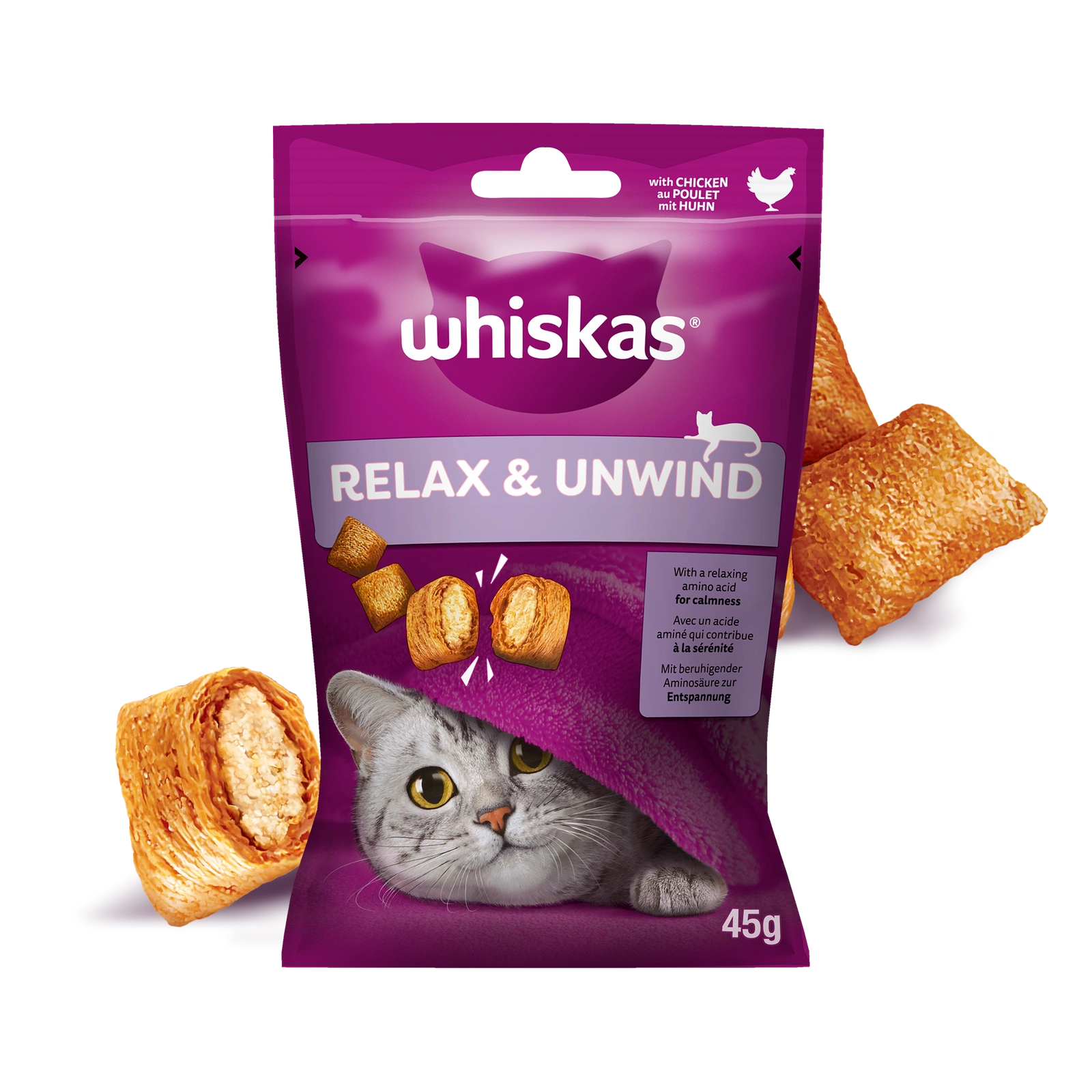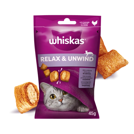 WHISKAS® Relax and Unwind with Chicken is a delicious and healthy snack in the form of crispy patties with a creamy filling. Their composition has been additionally enriched with vitamins and minerals. The recipe contains the amino acid tryptophan, from which serotonin, known as the hormone of happiness and relaxation, is produced. With WHISKAS® Relax and Unwind, you will not only provide your cat with great pleasure throughout the day, but above all, you will take care of their health. Your cat will be purring for more!