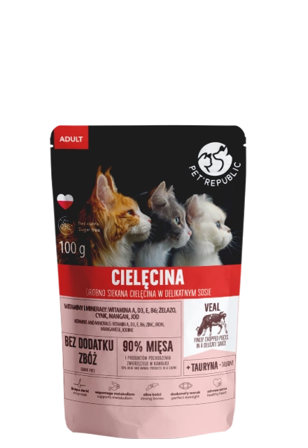 no pork PetRepublic Finely Chopped Pieces in Delicate Veal Sauce 100g (24 pcs.)