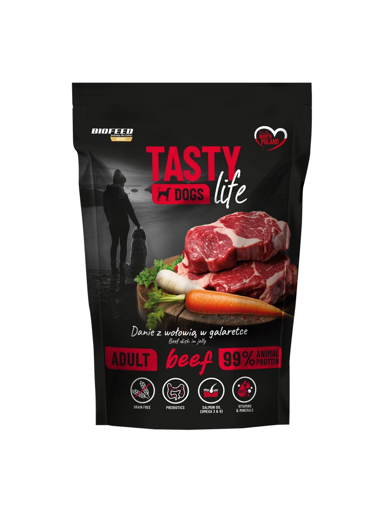 • Beef – a delicious source of high-quality animal protein. It provides valuable amino acids, iron, and B vitamins. It supports muscle development and regeneration, and the proper functioning of the hematopoietic system.