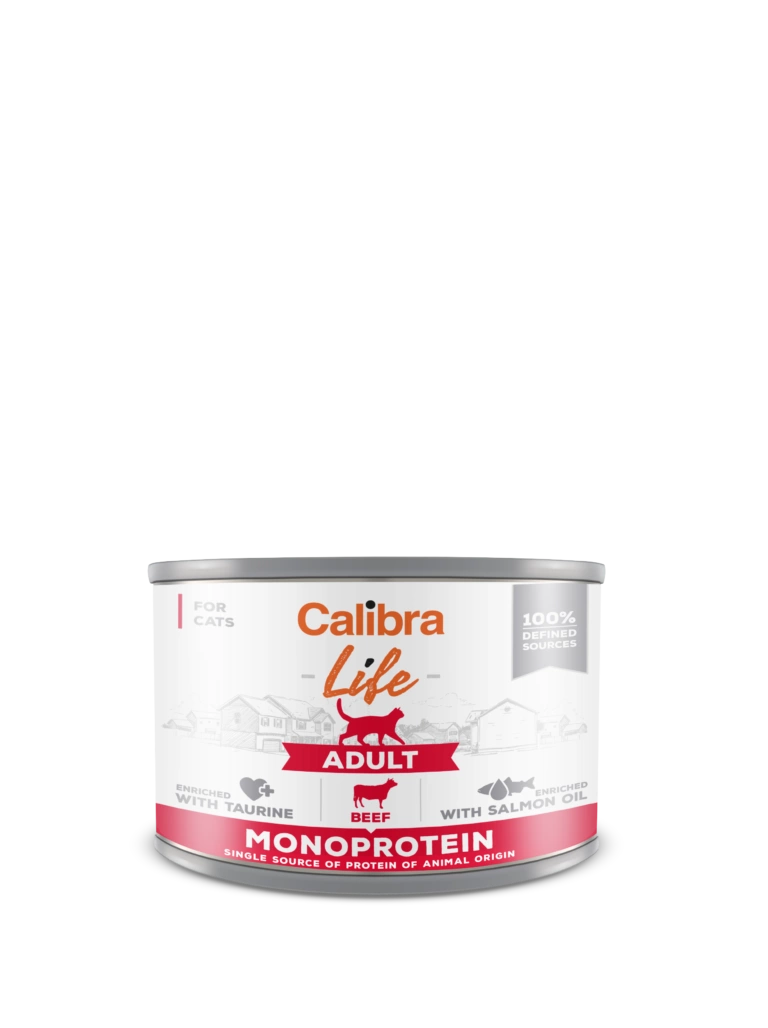 The recipe contains essential taurine, which is particularly important for visual function and heart function. Cats cannot produce it themselves and must therefore receive it as a supplement. This food contains salmon oil – a source of unsaturated omega-3 fatty acids (EPA, DHA), which have a beneficial effect on brain development and support the physiological functions of skin and coat, improving their quality. Omega-3 also has anti-inflammatory properties.
