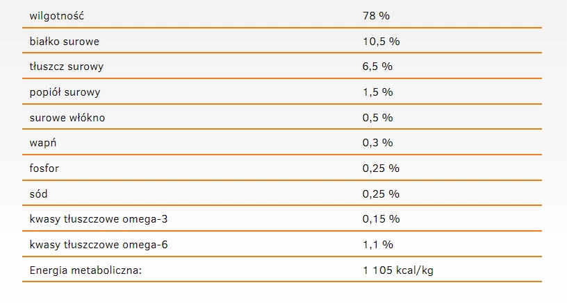 A complete wet food based on a single type of protein, formulated with a limited number of ingredients. It is grain- and gluten-free and easily digestible. It contains 100% defined, high-quality ingredients. The recipe also contains essential taurine, which is particularly important for visual function and heart health. Cats cannot produce it themselves and must therefore receive it as a supplement.