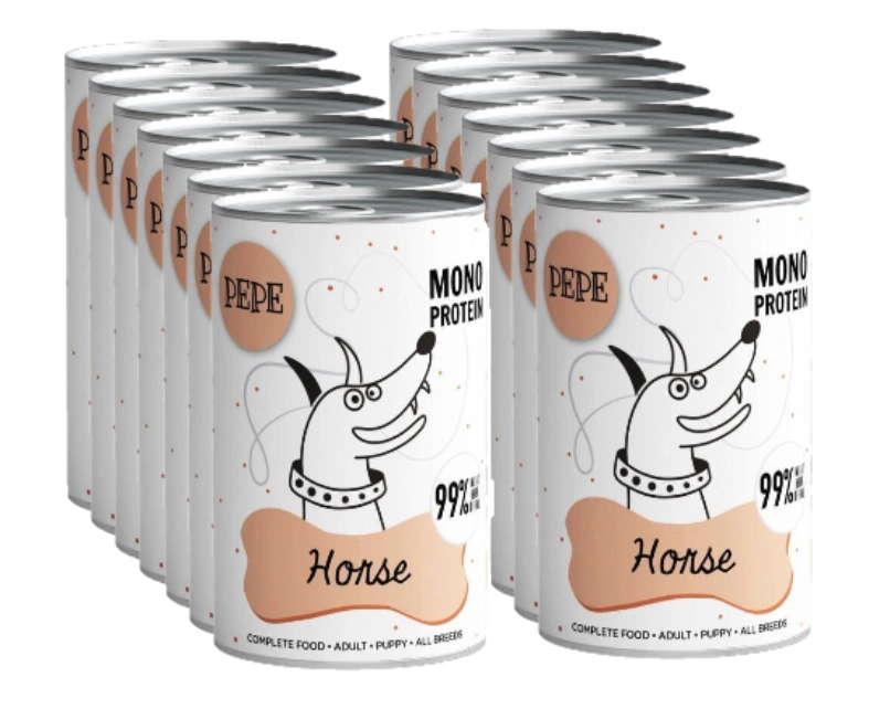PEPE Horse is a complete wet food that provides your dog with everything it needs: high-quality protein, fats, vitamins, and minerals. There's no need to supplement the diet with additional products – it's a ready-made, balanced meal for every day.