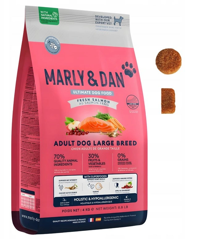 - Marly & Dan dry dog food 4kg salmon hypoallergenic large breed grain-free