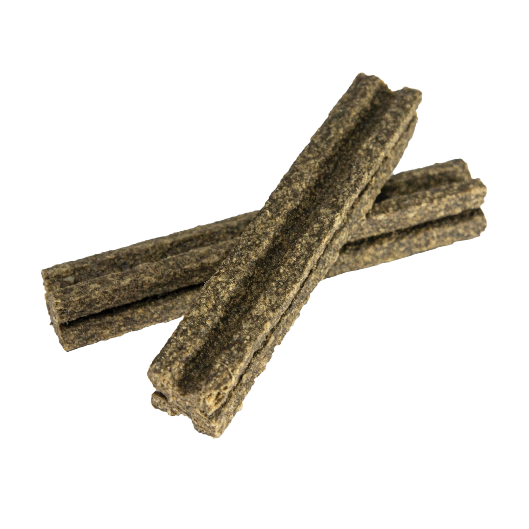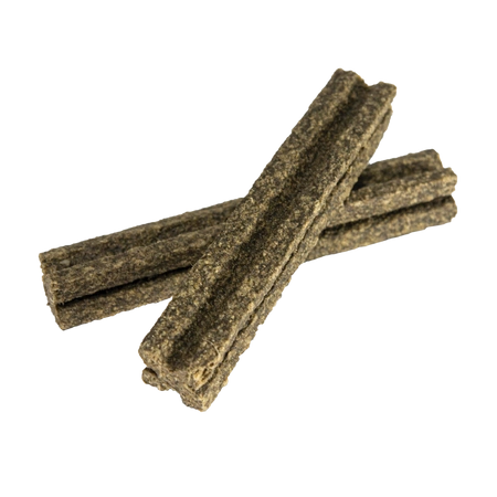 This monoprotein treat helps keep teeth and gums clean and healthy. This chew helps protect teeth from tartar buildup and provides calcium, essential for bone and tooth development. The addition of mint and green tea has antiseptic properties and helps eliminate bad breath. Containing only one type of meat, this treat is recommended for dogs with allergies to proteins other than turkey. No added sugar.