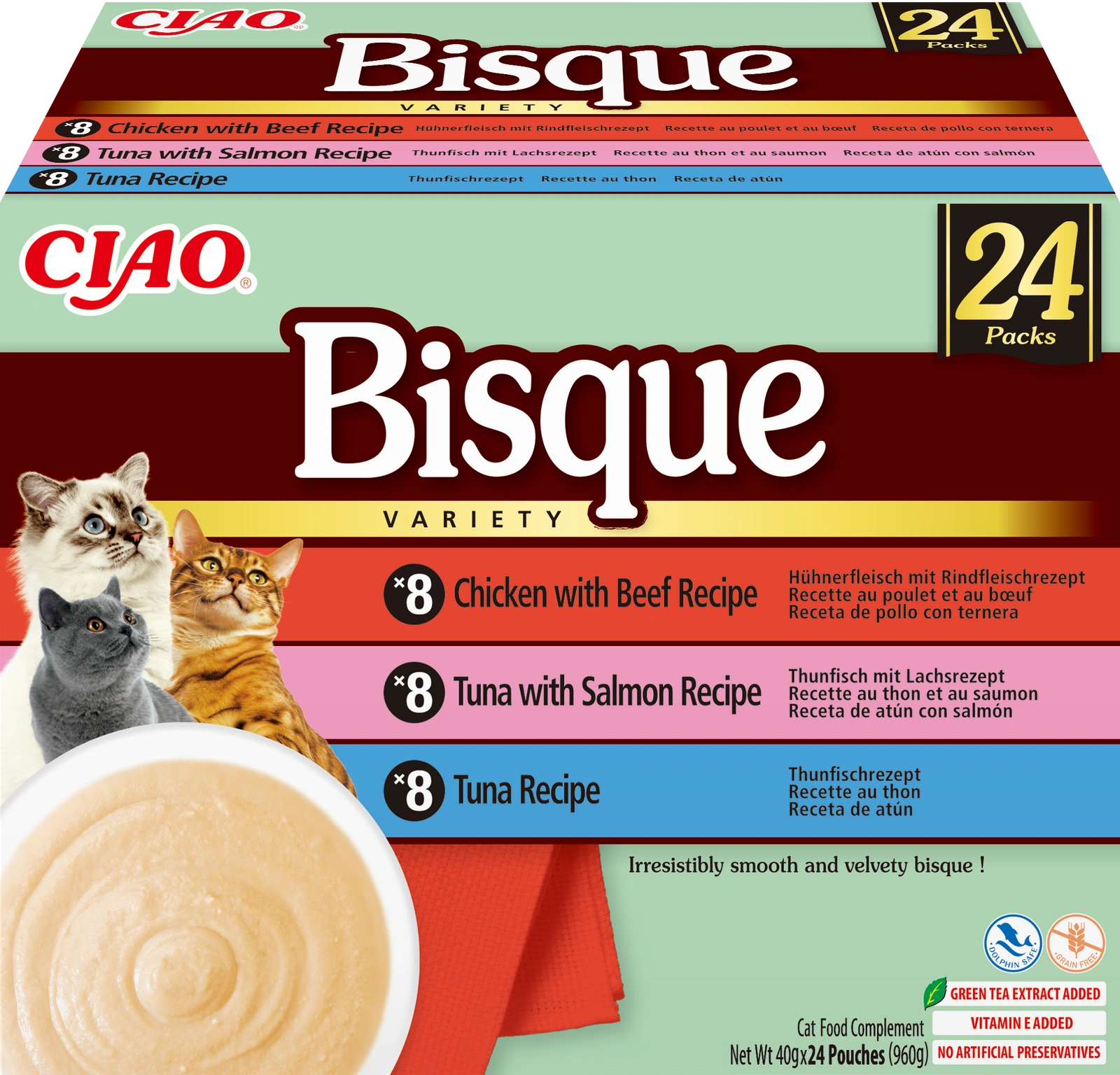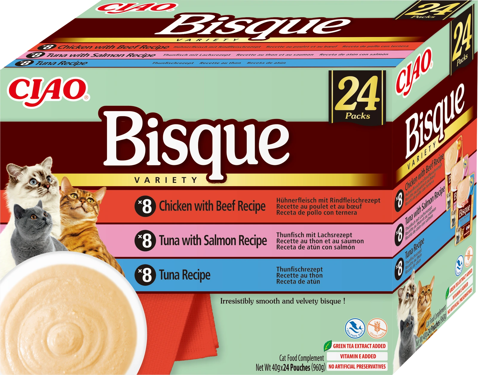 - Inaba Cat Ciao Bisque is a luxurious complementary cat food that combines exceptional taste with high-quality ingredients. This creamy soup will be a perfect addition to your cat's daily diet.