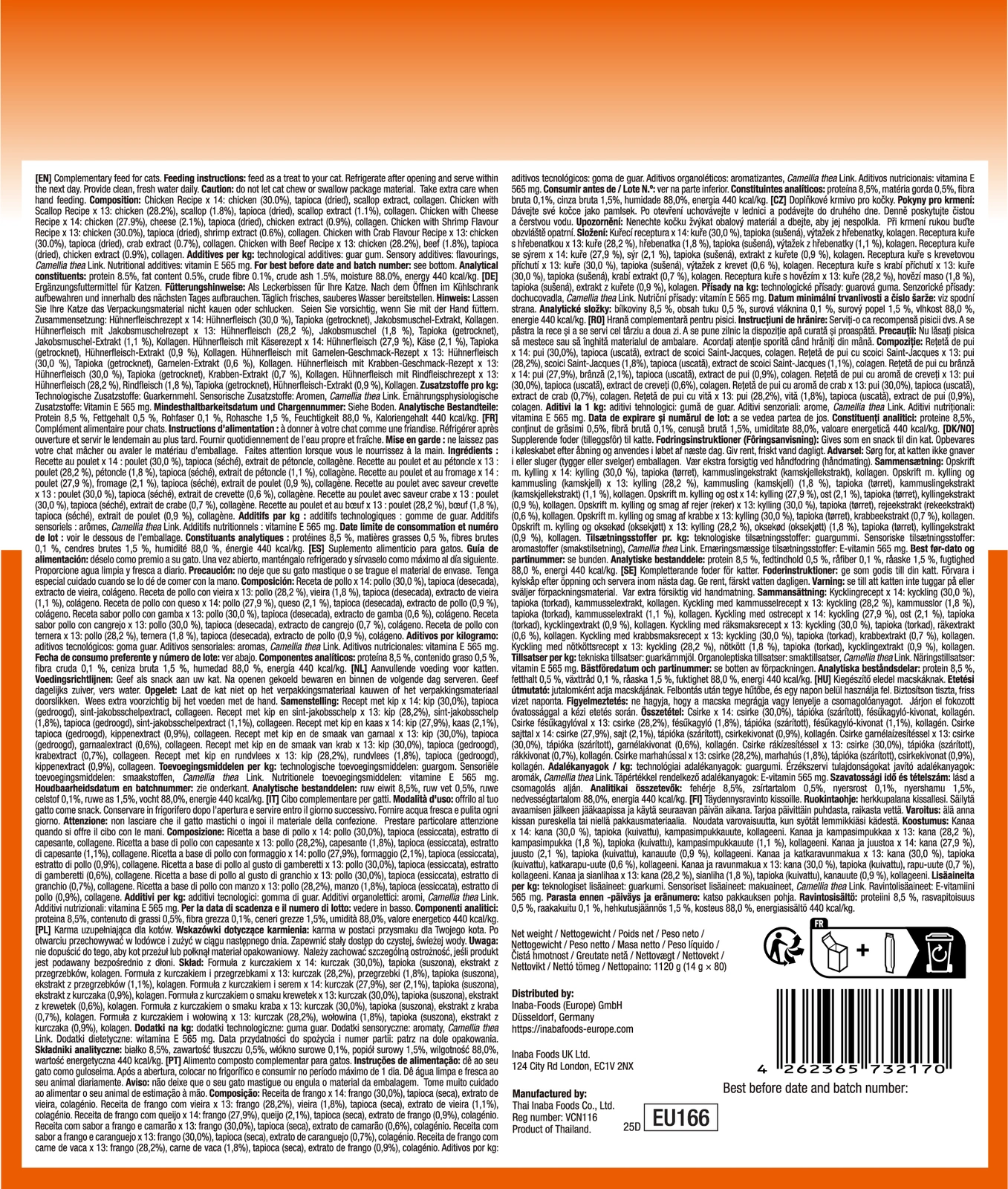 - Complementary cat food. A mix of treats with chicken.