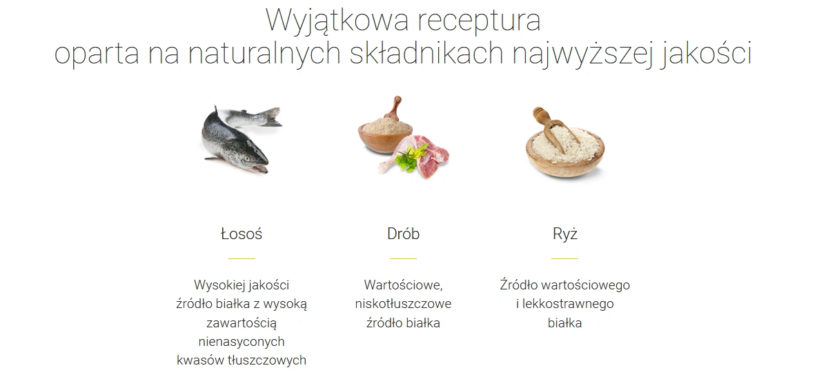 Our range includes food for dogs and cats, tailored to their age, size and individual nutritional needs. A key element of our quality is the selection of natural, healthy, and high-quality ingredients. In addition, we do not use genetically modified raw materials. To avoid allergies in animals, our foods do not contain wheat or soy, as well as artificial colors, flavors, and preservatives.