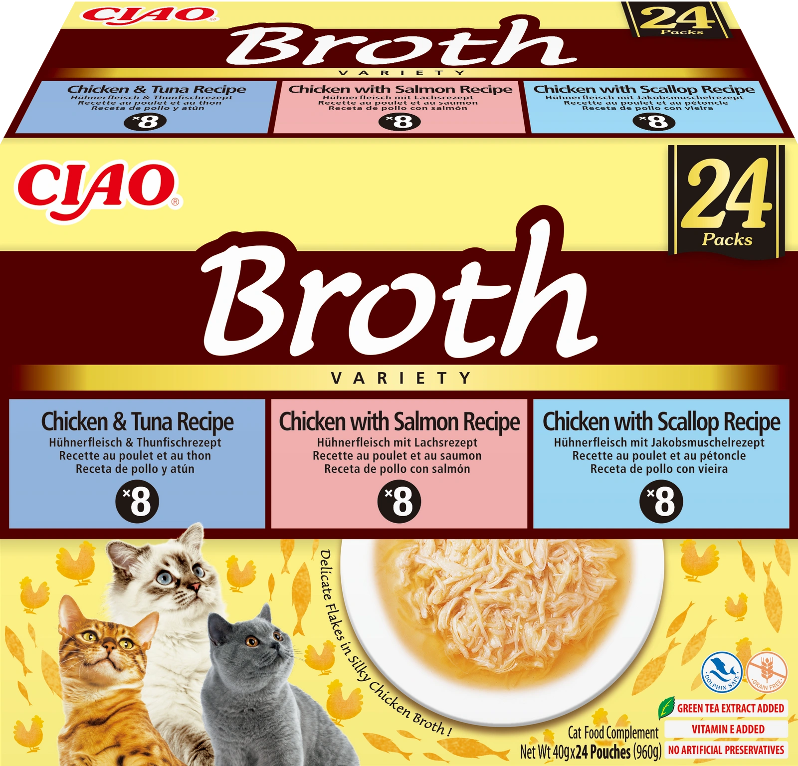 INABA Ciao Broth – complementary cat food with chicken, salmon, tuna and scallop flavour 2x(24x40g)