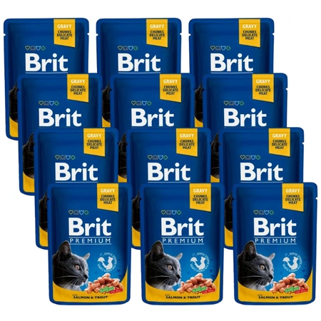 Brit Premium Cat with Salmon and Trout is a complete wet food for adult cats. Tasty, meaty sachets produced using a unique and gentle steam treatment method that preserves the original aroma and flavour of the meat.