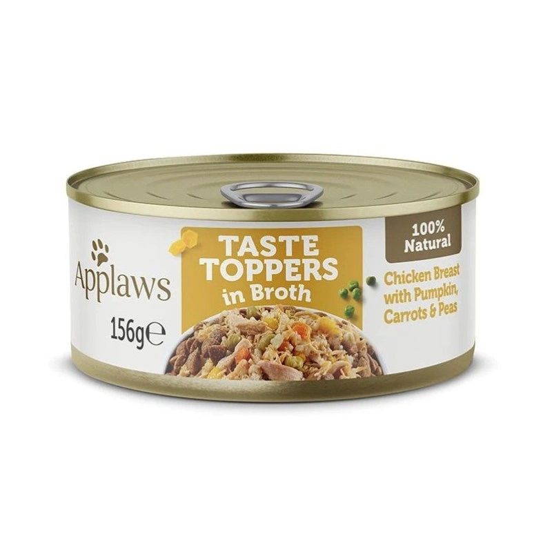 Applaws Taste Toppers Natural Wet Dog Food Chicken with Pumpkin Carrots and Peas in Bouillon 24x156g Can