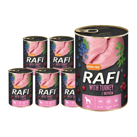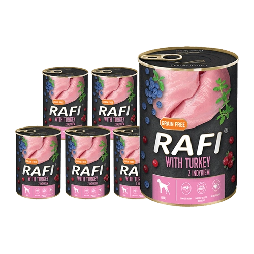 Complete wet food for adult dogs of all breeds - with turkey. Apart from containing complete protein rich in lysine and methionine, the meat and raw materials from turkey are a source of valuable polyunsaturated fatty acids, especially of the n-6 family, which have a beneficial effect on the skin and coat. The addition of linseed oil enriches the feed with many biologically active compounds, mainly phytosterols, which regulate lipid metabolism and improve the function of the digestive tract.