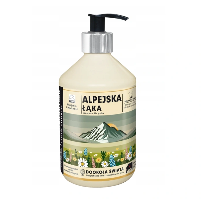 Alpine meadows are associated with delicacy and purity, blue skies and soft green grass dotted with colorful flowers. Alpine Meadow Shampoo is designed for dogs with sensitive skin and coats. The cleansing ingredients used do not damage the lipid barrier of the dog's skin. Arnica extract improves microcirculation in capillaries, has anti-inflammatory and skin regenerating properties. It accelerates skin repair processes and improves its elasticity. Lavender extract facilitates the healing of minor wounds. It helps moisturize the skin, accelerates hair and coat growth, and nourishes them. The fragrance composition used provides your dog with relaxation and soothing during bathing. Specially selected ingredients from alpine herbs will provide your dog with gentle care.