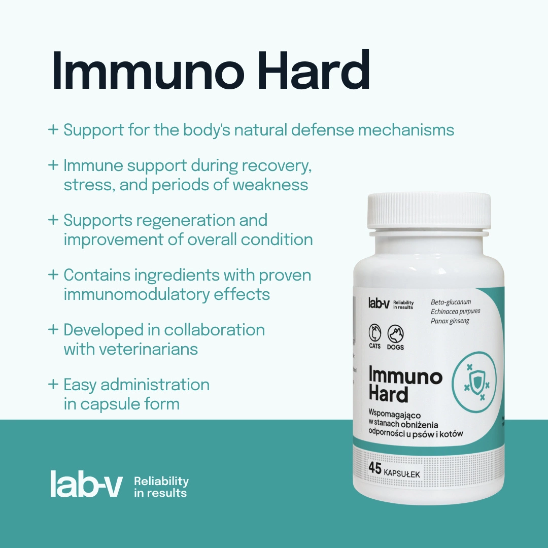 - Immuno Hard is an advanced capsule formulation developed in collaboration with veterinarians specifically for dogs and cats that need support in combating reduced immunity.