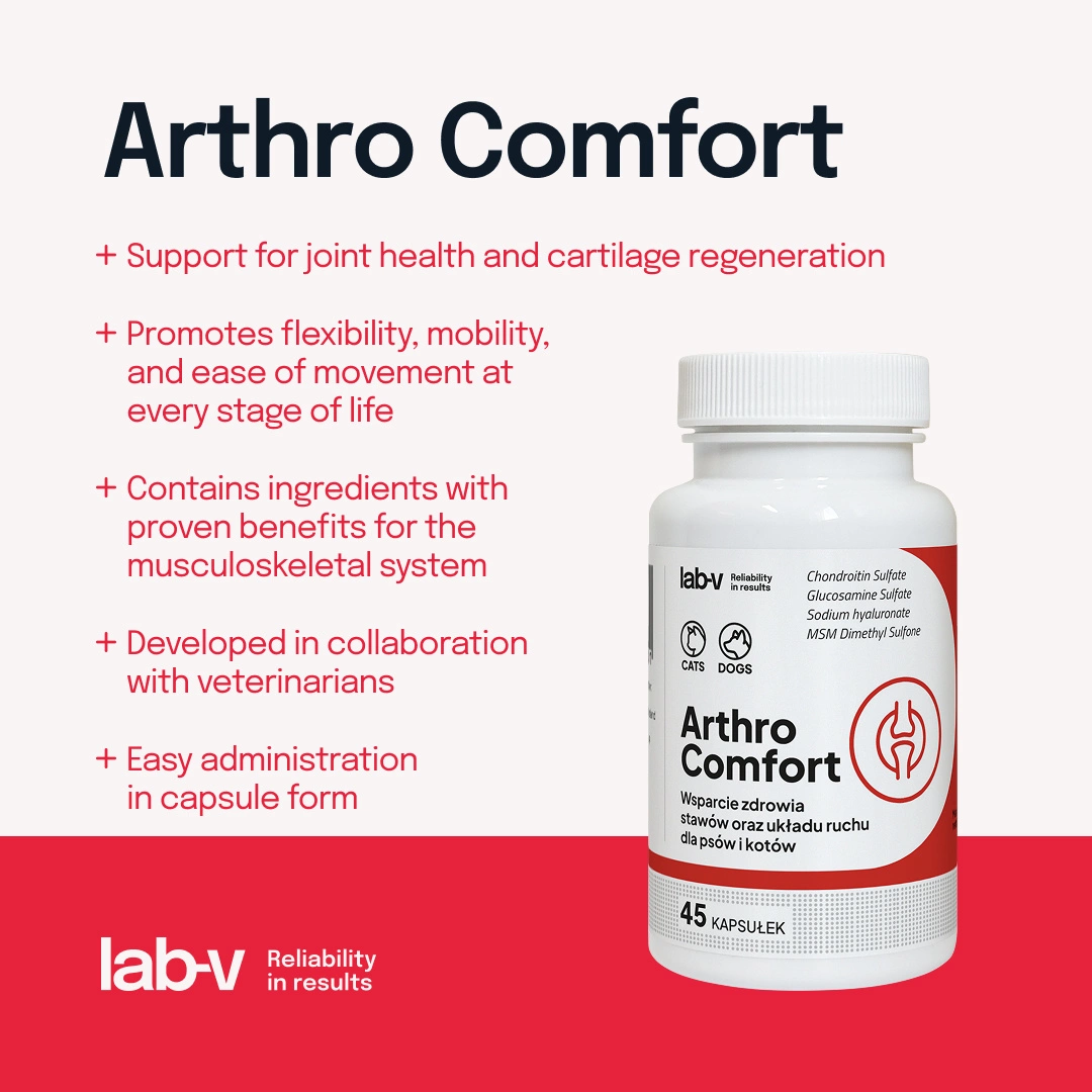 Lab-v Arthro Comfort – Comprehensive support for joint and musculoskeletal health in dogs and cats 2x45 capsules