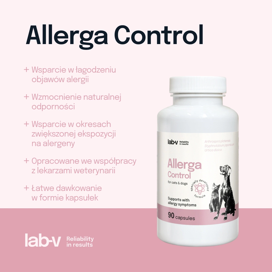 - Allerga Control is a specialized capsule formulation designed for dogs and cats struggling with allergy symptoms. Thanks to carefully selected ingredients, the product supports the body's natural defenses, alleviates allergy symptoms, and