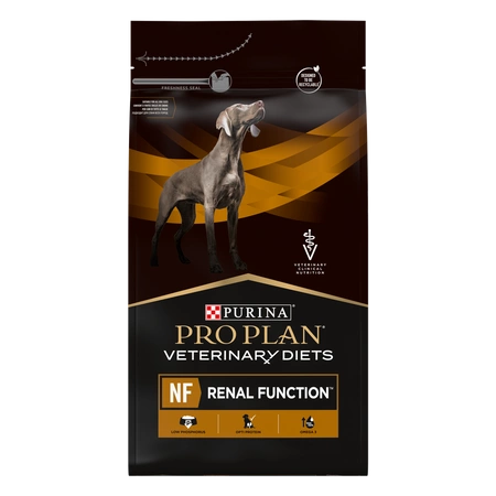 PURINA Veterinary Diets NF Renal Function is a dietary food for dogs, low in phosphorus and with a limited amount of high-quality protein, designed to support kidney function in cases of chronic renal failure. It is a complete, balanced food for adult dogs.