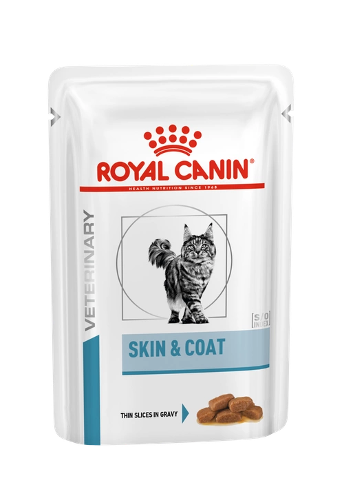 Royal Canin Adult Skin & Coat is a dietary wet food for adult cats over 12 months of age that supports skin and coat health.