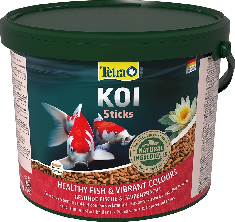 - Complete food for Koi carp, in the form of sticks floating on the water surface. Capacity 10l.