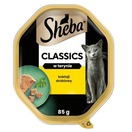 Sheba® Classics complete food is a true delight in the form of a gourmet terrine for your feline friend. This poultry cocktail will delight the palates of even the most discerning cats. The secret to the masterful Sheba® Classics recipe lies in refined ingredients, vitamins, and minerals. Each tray contains nutrients that support your cat's proper functioning. Indulge your cat in culinary delights as they savor delicious Sheba® Classics food, which will satisfy even the pickiest appetite.